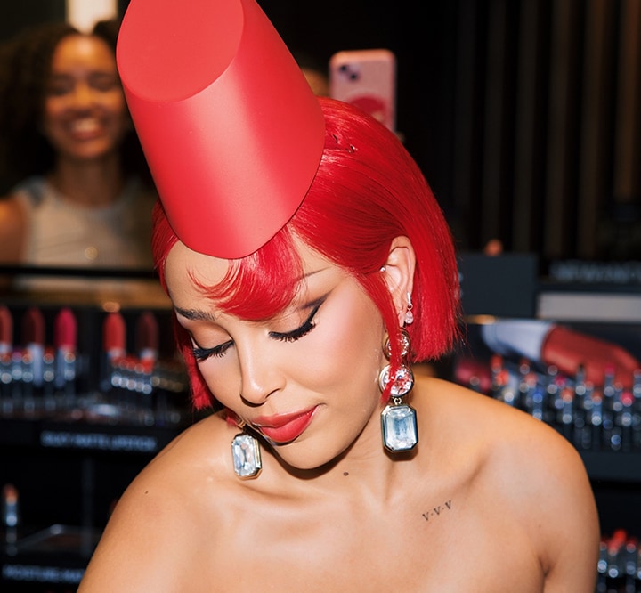 Doja Cat gab "I ONLY WEAR M·A·C" eine neue Bedeutung, als sie zum M·A·C Match Day als lebensgroßer Lady Danger Lippenstift erschien, um Fans im Glendale Galleria in Kalifornien zu treffen und zu begrüßen. Hol dir ihren auffälligen Look, inspiriert von ihrem charakteristischen Siren-Red-Ton.